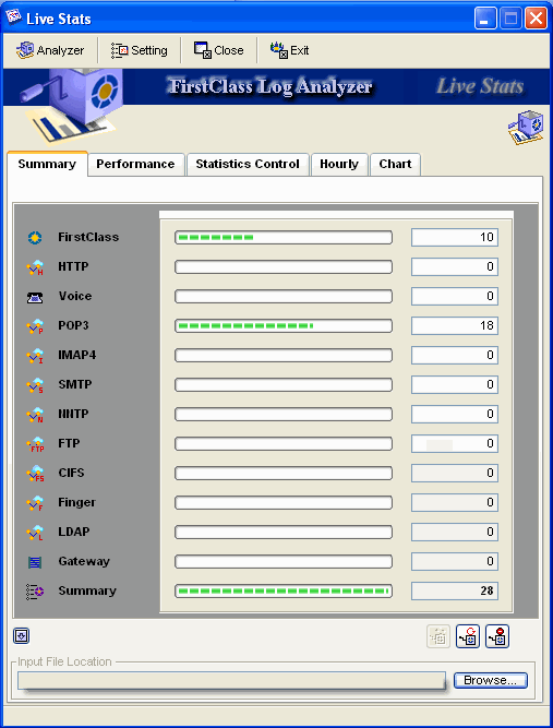 Displays the summary chart of the current total number of hourly logins. Click a protocol button to view its hourly chart.