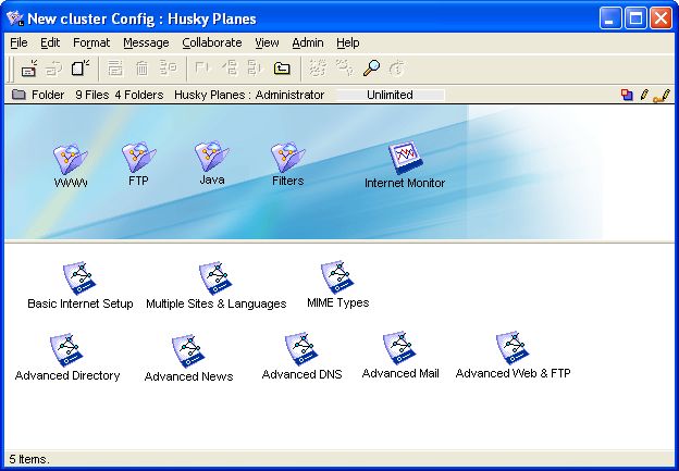 The new folder name is the gateway (service) name with the word Config after it: in this case, New cluster Config. In this folder, you will find all of the same folders and forms that are in your primary Internet Services folder.