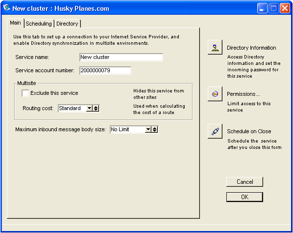 Close and save both the New cluster Gateway Directory Information form and the New cluster Gateway form.