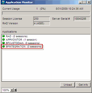 To do this, ensure that Application Services is running and that in its Application Monitor you see the BFINTEGRATION application loaded.