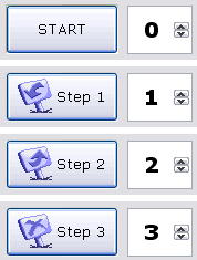 Control buttons set numeric values on other fields. You can use these buttons to issue one command or a series of commands in a multiple step progression. In the case of multiple steps, a control button can cycle through each step in a continuous loop or dead end at the final step.