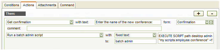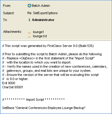 When you use the REPLY and NEW batch commands to create a conference, FirstClass sends you a reply only if the conference was not created correctly. However, you may want to receive a message indicating the script has completed. To achive this, enter:
