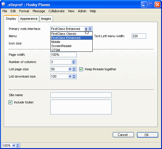 Your users also have the ability to choose which web interface they wish to see on the Viewing tab of their personal Preferences form. This setting overrides the .sitepref form settings, unless you disable this option for your users.