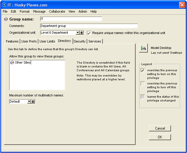 8 Open each user group form, click the Directory tab, and enter Other Sites in "Allow this group to view these groups".