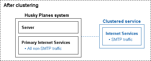 In this scenario, we decided to cluster all SMTP traffic on Husky Planes. This way, all other services (for example, HTTP, FTP, and so on) can run more efficiently on our primary Internet Services machine.