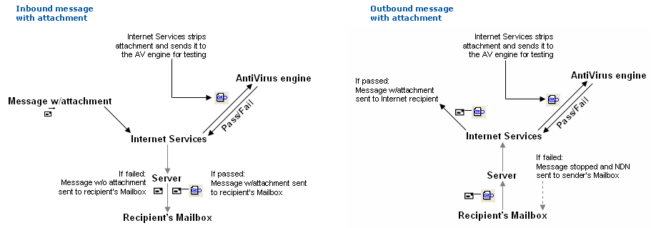Once you complete this task, Internet Services feeds any inbound or outbound attachments to the AV machine, where the AV engine provides either a pass or fail indication.