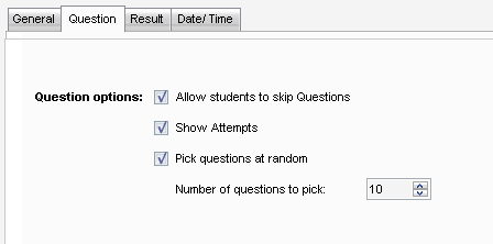 • Select whether you want the questions selected randomly (Pick questions at random).