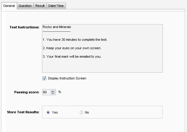 • Select whether students will be emailed their final test result upon completion of the test (Email Final Result on Completion).
