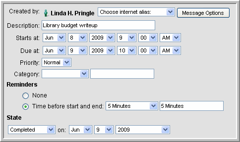Online scheduling of events (a time commitment, such as a meeting) and tasks (something that you need to do, such as submitting a report). You have a personal calendar, and you may also have access to public calendars. |
