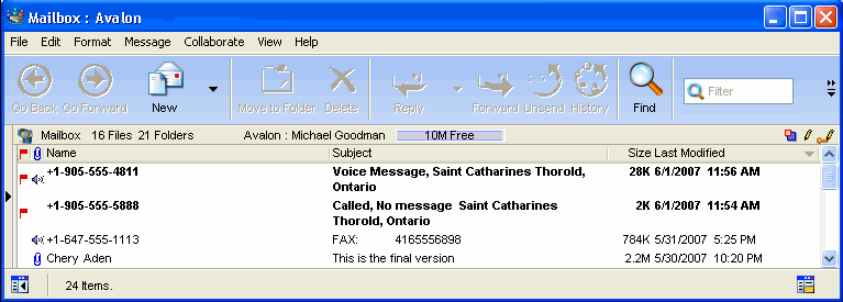 Previous FirstClass Unified Communications releases integrated all FirstClass modules giving you one unified Mailbox for all messages, be they voice, fax, or text.